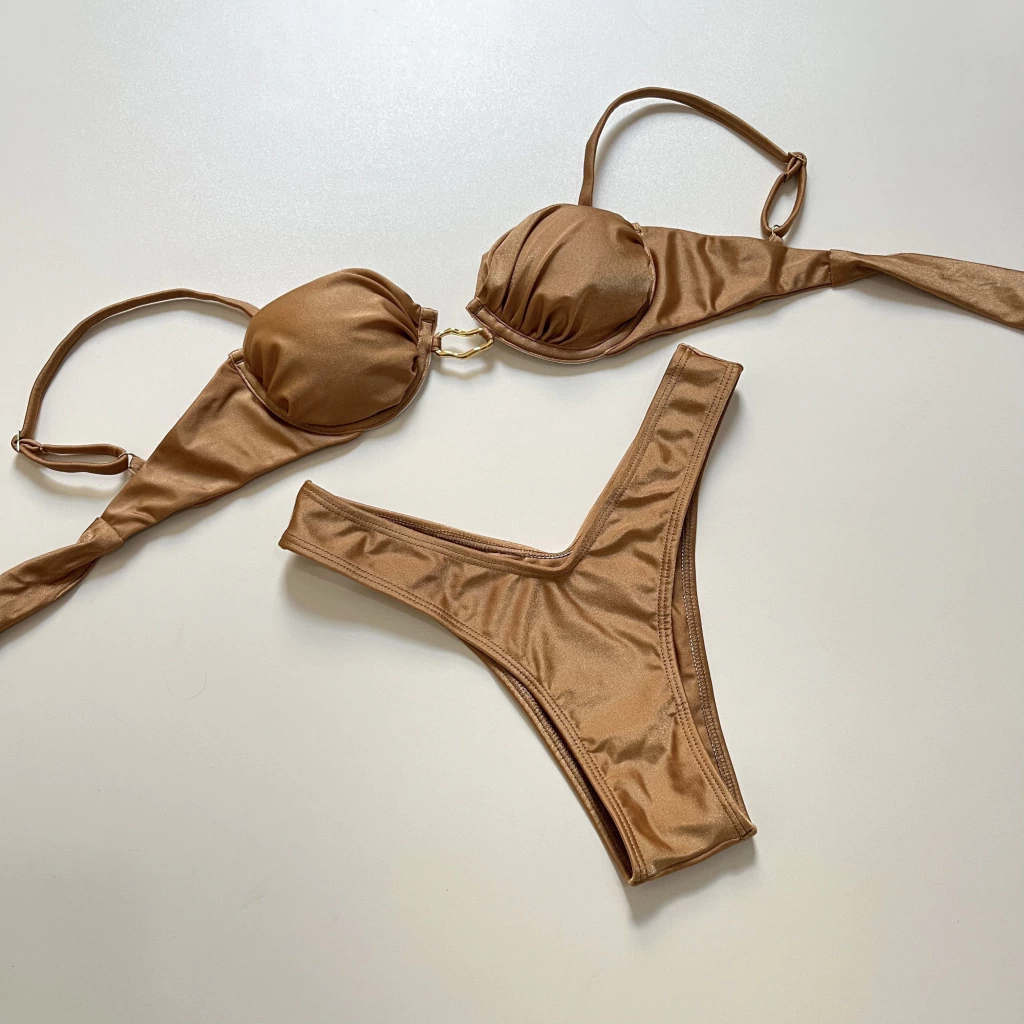 Biquíni meia taça com bojo removível, use como quiser, detalhe em metal dourado! Alças superiores reguláveis e laterais de amarração! A calcinha é asa delta e semifio
